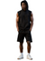 Matching gym gillet and shorts set in black soft fleece. Ideal activewear for training, gym and casual. Comes with kangaroo pocket and full front zip.