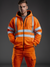 Full zip front hoodie with horizontal hi vis reflective tapes, 300 gsm soft and comfy material in orange with inner fleece, features 2 side pockets and elasticated cuffs and hem for good fit.