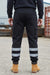 Men's Black hi vis joggers made from soft comfy fleece featuring cargo pockets. The trousers have a elasticated waist line and high visibility reflective tape.